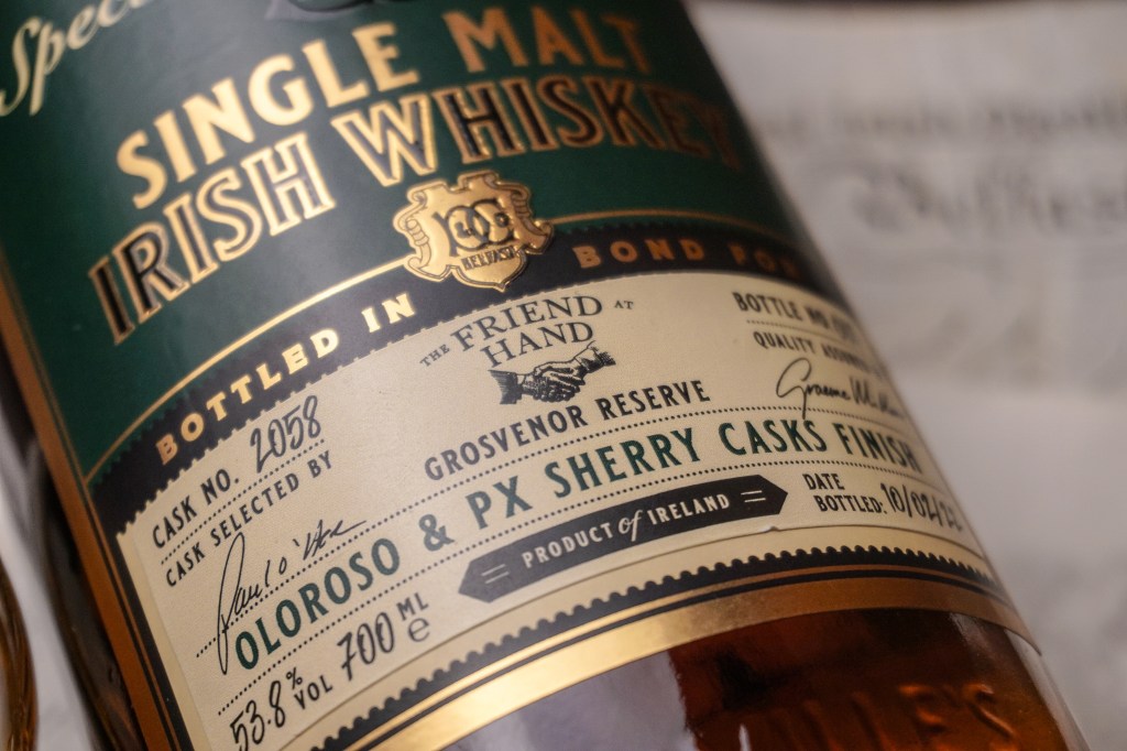 “As longstanding supporters of Dunville’s Irish Whiskey and The Echlinville Distillery, we are proud to add Cask 2058 Grosvenor Reserve to our collection at The Friend At Hand.”