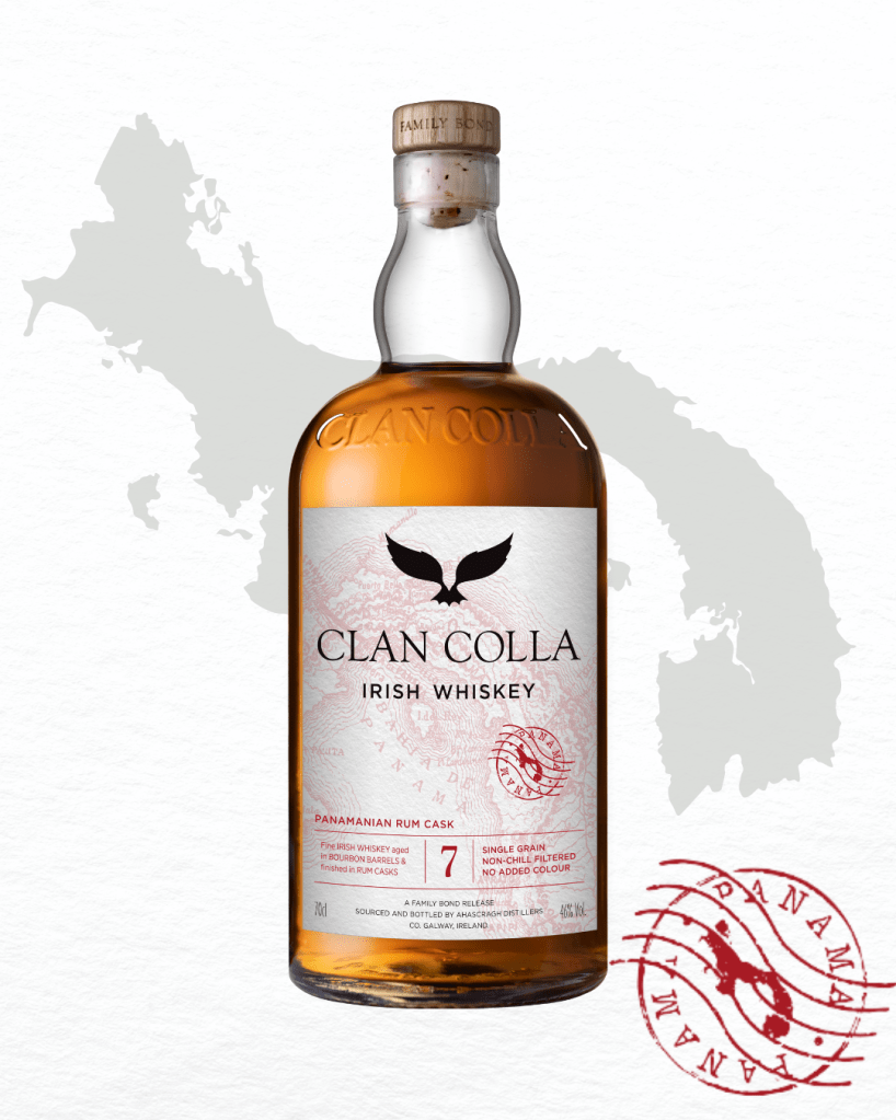 Ahascragh Distillery expand their Family Bond series with their first Single Grain Irish Whiskey release. Clan Colla 7 Year Old Single Grain is a fine Irish whiskey, aged in ex-Bourbon casks and finished in Panamanian Rum all the way from Central America.